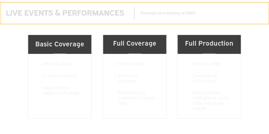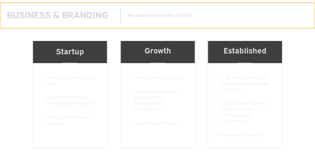 Each package will be customized to the needs and goals of the project. Please reach out with your project details for a more accurate rate estimate.